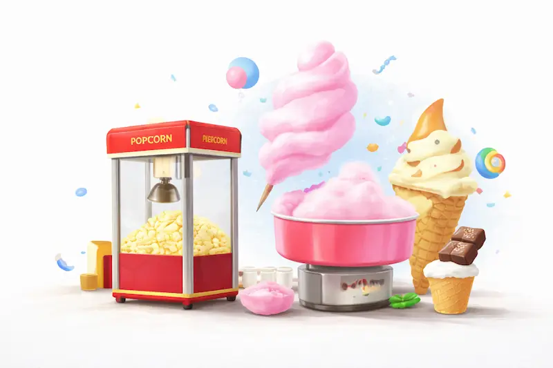Popcorn, cotton candy, ice cream & more – perfect add-ons for birthday and kids events.