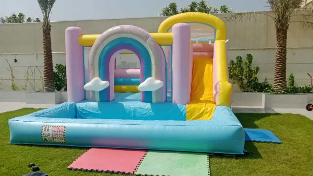 Our inflatable water slides AbuDhabi come in a variety of designs and materials and are perfect for both kids and adults. They are designed to resemble castles (like in kids’ stories) or other fun structures. This feature adds an extra element of fun and excitement for the little ones. Don’t worry! Adults can also get in on the water entertainment too.